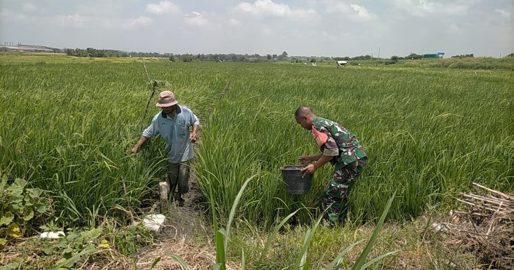 GRESIK – Perkuat Ketahanan Pangan, dalam Pembinaan Teritorial (Binter), Babinsa Koramil 0817/02 Wringinanom, Kopka Hariono, melaksanakan kegiatan pendampingan sekaligus membantu petani di Desa Kepuhklagen, Kecamatan Wringinanom, Kabupaten Gresik. Kegiatan tersebut dilakukan dengan turun langsung ke sawah membantu petani dalam perawatan tanaman padi. Minggu (15/2/2026).